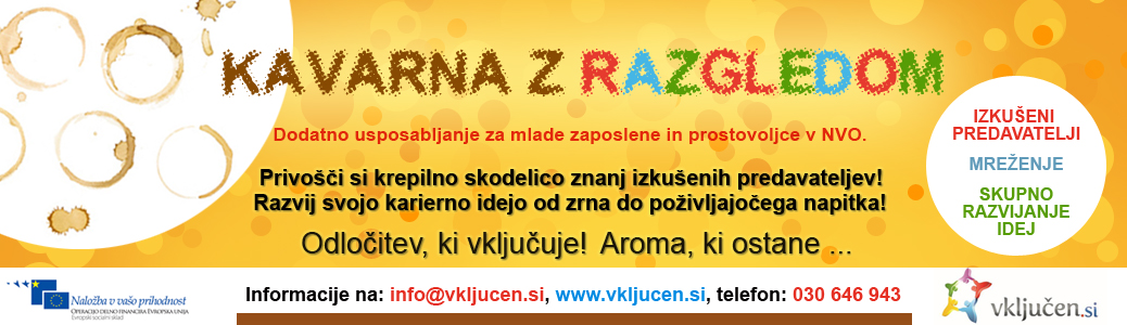 Mreža Vključen.si vabi na drugo srečanje Kavarne z razgledom: ABC DELOVNEGA PRAVA, ki bo v četrtek, 19. februarja 2015, med 9. in 11. uro v Skuhni, Trubarjeva 56, Ljubljana. Seznanili se bomo s pravicami zaposlenih, sklepanjem pogodb o zaposlitvi, prenehanjem delovnih razmerij, delom preko drugih pogodb, prostovoljnim delom in drugimi pomembnimi delovnopravnimi vprašanji za zaposlene in prostovoljce v NVO.
